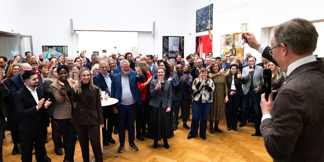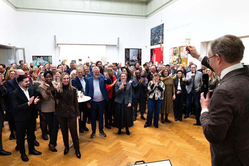 Wij kijken terug op een geslaagde Nieuwjaarsbijeenkomst van onze vereniging. Ongeveer 200 mensen kwamen bijeen in Pulchri Studio in Den Haag in een zaal die ook dienstdoet als expositieruimte voor moderne kunst.