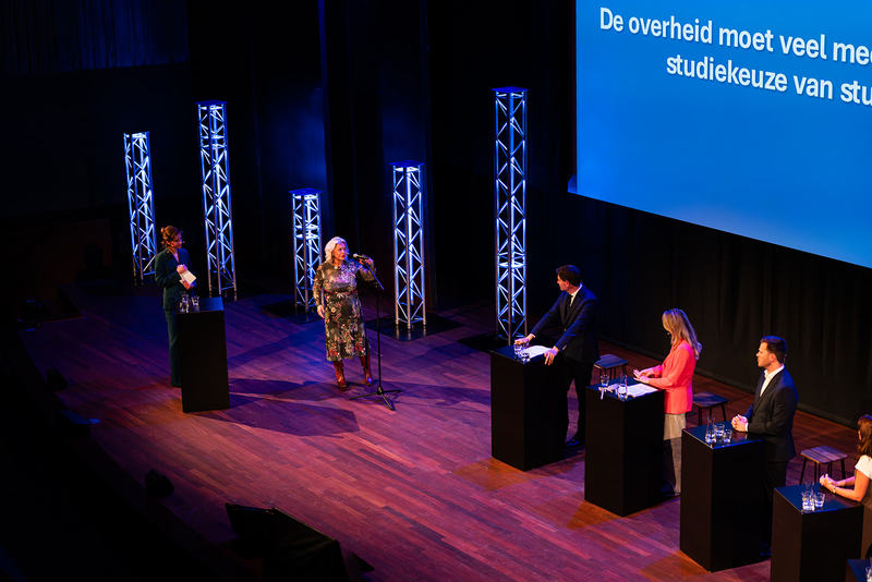 Onder leiding van Marte Schuurmans gingen zes kandidaat-Kamerleden – Jan Paternotte (D66), Sandra Beckerman (SP), Queeny-Aimée Rajkowski (VVD), Harmen Krul (CDA), Cynthia Gordijn (JA21) en Mikal Tseggai (GroenLinks-PvdA) – met elkaar en met studenten in gesprek. Hun aanwezigheid gaf het debat politiek gewicht. Ze gingen serieus in op actuele thema’s die studenten direct raken: van de basisbeurs en studentenhuisvesting tot stagevergoedingen en gelijke kansen.